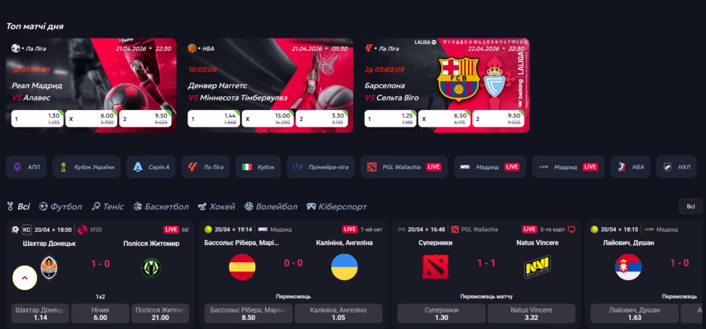 - Generous bonuses for sports betting (to 100 000 UAH)